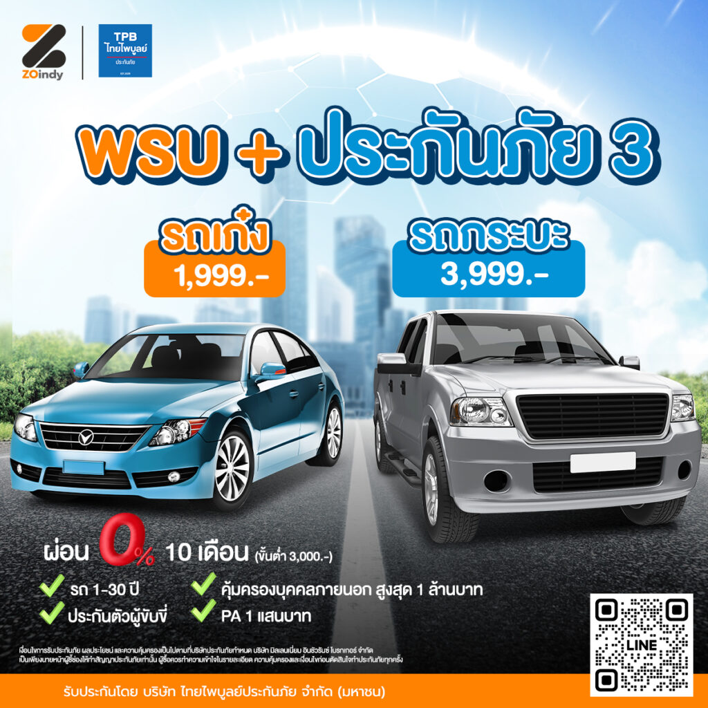 พ.ร.บ. + ประกันภัยชั้น 3 ราคา 1,999 บาท